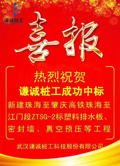 9月4日,繼謙誠樁工成功中標珠肇高鐵ZJSG-2標塑料排水板、密封墻、真空預(yù)壓項目后,全資子公司擎巖智能再次傳來喜訊:擎巖智能在多家競標單位中...
