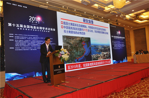 中冶集團(tuán)武漢勘察研究院有限公司黃濤教授作題為《深厚軟土地基處理關(guān)鍵技術(shù)研究與應(yīng)用》的特邀報(bào)告