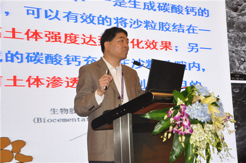 河海大學(xué)高玉峰教授作題為《生物處理沙漠風(fēng)積沙研究進(jìn)展》的特邀報(bào)告