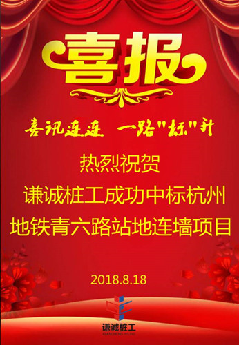 今年8月,集團(tuán)華東區(qū)域杭州分中心捷報(bào)頻傳,在接連中標(biāo)杭州地鐵7號(hào)線土建7工區(qū)地下連續(xù)墻工程及杭州地鐵8號(hào)線新灣站地下連續(xù)墻工程兩項(xiàng)目后,憑借過(guò)硬的技術(shù)、豐富的施工經(jīng)驗(yàn)及科學(xué)合理的施工方案,在多家競(jìng)標(biāo)企業(yè)中脫穎而出,于8月18日又成功中標(biāo)杭州地鐵青六路站地下連續(xù)墻工程項(xiàng)目!