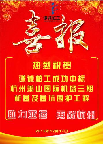 本站訊 12月19日,公司收到中建八局下達的中標通知書,經(jīng)過與多家競標單位的激烈角逐,謙誠樁工成功中標杭州蕭山國際機場三期項目新建航站樓及陸側(cè)交通中心工程旅客航站樓等樁基及基坑圍護工程,合同總價約5500萬元。這是公司繼杭州地鐵項目打開杭州及華東地下空間市場后承接的又一重大亞運民生項目。
