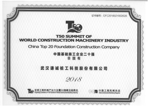 對謙誠樁工而言,躋身中國基礎施工企業(yè)二十強是肯定,更是激勵。我們有信心在基礎工程領域飛得更高,走得更遠。