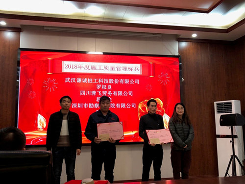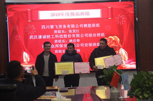 會(huì)上,由于我司杭州地鐵青六路站項(xiàng)目在中鐵十九局總包部對所屬各工區(qū)進(jìn)行的安全文明施工綜合檢查考評中“喜登第一”,武漢謙誠樁工科技股份有限公司被授予“2018年度優(yōu)秀合作單位”、“2018年度模范班組”,王延海同志被評為“2018年度先進(jìn)生產(chǎn)工作者”,謝慧、何帥同志被授予“2018年度安全管理標(biāo)兵”,羅權(quán)良同志被授予“2018年度施工質(zhì)量管理標(biāo)兵”等榮譽(yù)稱號。