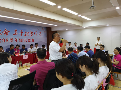 7月4日,國(guó)際城社區(qū)黨委組織轄區(qū)內(nèi)7支黨支部開展以“堅(jiān)守初心使命,勇于擔(dān)當(dāng)作為”為主題的慶祝建黨98周年知識(shí)競(jìng)賽,現(xiàn)場(chǎng)百余名黨員在徐曉燕書記的帶領(lǐng)下,重溫入黨誓詞,重寫入黨志愿,共唱一首贊歌,各參賽隊(duì)伍秉持“友誼第一 比賽第二”的理念,賽出風(fēng)格,更賽出了水平。謙誠(chéng)樁工黨支部參賽隊(duì)伍以210分的高分獲得第二名的好成績(jī),展示了黨支部成立以來在支部建設(shè)和黨員理論教育方面取得的優(yōu)異成績(jī)!在風(fēng)采展示環(huán)節(jié),黨支部副書記陳黎斌在分享黨建工作心得的基礎(chǔ)上,更以一首嘹亮地《長(zhǎng)征》向黨的98歲生日獻(xiàn)禮!