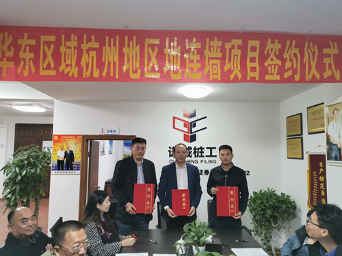 11月21日下午5點(diǎn)18分,公司所屬地下空間華東工程指揮部“杭州地區(qū)地連墻項(xiàng)目集中簽約儀式暨‘大干六十天’動員大會”圓滿舉行。公司董事長郭克誠、副董事長李義勇、董事長助理兼智能樁工董事長孫偉、監(jiān)事會主席兼人事總監(jiān)況亞萍、黨支部副書記兼工會主席陳黎斌、地下空間公司副總經(jīng)理兼華東工程指揮部指揮長王延海等領(lǐng)導(dǎo)出席,指揮部在杭全體成員參加儀式。郭克誠董事長代表公司,王延海代表指揮部,李偉、袁俊杰、魏東、楊凱分別代表杭州蕭山國際機(jī)場三期項(xiàng)目地連墻工區(qū)、富陽秦望通道江南工作井地下連續(xù)墻項(xiàng)目、杭州西站樞紐項(xiàng)目、杭州下沙(浙江交工)三工區(qū)隧道地連墻項(xiàng)目分別在內(nèi)部承包協(xié)議上簽字,全體與會成員共同見證簽約過程。