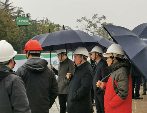 已75歲高齡的龔曉南院士帶領(lǐng)專家團成員冒雨考察施工現(xiàn)場,在詳細了解項目基本情況的基礎(chǔ)上,針對項目施工過程中的關(guān)鍵環(huán)節(jié)和技術(shù)重難點進行探討,就工程工藝流程和質(zhì)量管控方案進行研討。龔院士對現(xiàn)場安全文明施工、工藝流程標準化、質(zhì)量檢測方案和設材管控表示肯定,回顧由公司承辦的第十五屆全國地基處理學術(shù)研討會,結(jié)合現(xiàn)場項目風采,對公司企業(yè)實力、管理水平、創(chuàng)新能力、團隊建設、企業(yè)文化表示高度贊賞。