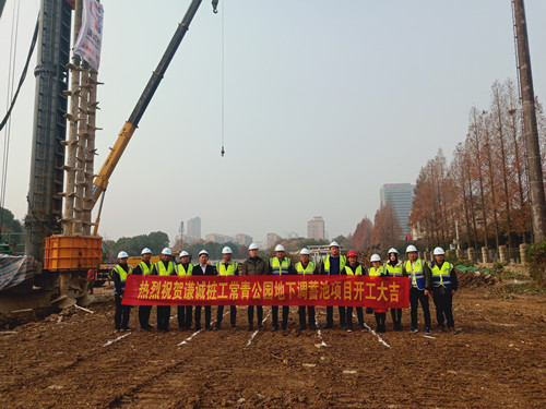 在杭州富陽江南大道項目宣告開工的同時,由謙誠樁工華中工程指揮部承建的常青公園地下調(diào)蓄池項目也于10時18分正式開工并舉行開工儀式。