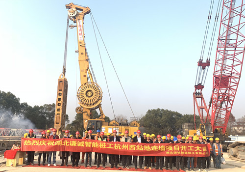 12月15日下午,由我司承建杭州西站C1地連墻項目在15時18分開工并舉行開工儀式。儀式由謙誠樁工副董事長兼華東工程指揮部董事長李義勇主持,甲方中鐵四局杭州西站項目副經(jīng)理賀銀波、安全總監(jiān)劉順出席,謙誠樁工董事長郭克誠,華東工程指揮部總經(jīng)理盧治軍,地下空間總工程師段昌恒、副總經(jīng)理兼地下空間華東工程指揮部指揮長王延海攜地下空間公司,華東工程指揮部在杭代表,杭州在建項目負責人及杭州西站項目全體參建人員參加。