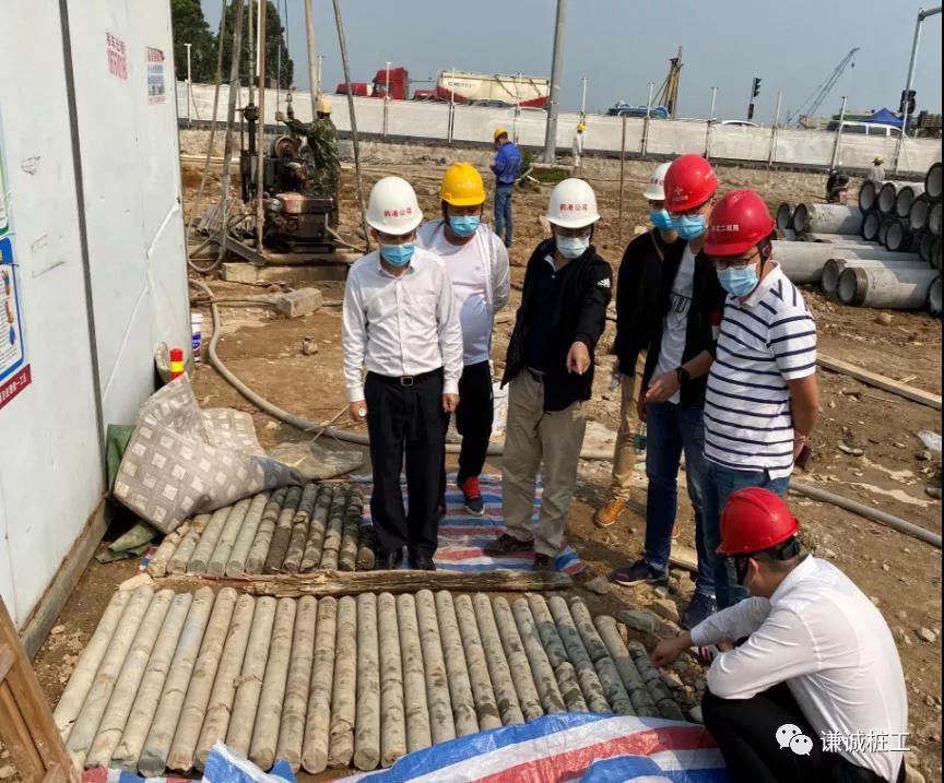 創(chuàng)新源自實(shí)踐,同時(shí)也將更好的服務(wù)于實(shí)踐。2020年3月2日,由公司承建珠海大道擴(kuò)建工程先行標(biāo)項(xiàng)目正式開工,由此打開了該技術(shù)市場化應(yīng)用的大門。項(xiàng)目深層攪拌樁共打試樁18根,每根樁長22米,在珠海交通集團(tuán)鶴港公司、路橋公司等單位的見證下,中交二航局二公司對(duì)我司采用海相淤泥質(zhì)土專用固化劑施工的攪拌樁進(jìn)行抽芯與靜載荷質(zhì)量檢測,經(jīng)廣東全科工程檢測有限公司和蘇交科集團(tuán)廣東檢測認(rèn)證有限公司分別檢測認(rèn)定:樁身整體均勻良好,芯樣連續(xù)、完整、堅(jiān)硬,攪拌均勻,呈短柱狀,局部成塊,樁底持力層為淤泥質(zhì)黏土,滿足設(shè)計(jì)要求;攪拌樁樁身強(qiáng)度代表值分別為1.59~3.55Mpa,遠(yuǎn)大于設(shè)計(jì)值的0.8Mpa,滿足設(shè)計(jì)要求;單樁豎向抗壓極限承載力均為220KN,檢測結(jié)論是復(fù)合地基水泥攪拌樁單樁豎向靜載荷試驗(yàn)滿足設(shè)計(jì)要求。這一檢測結(jié)果,從實(shí)踐的層面有力驗(yàn)證該技術(shù)成功打響了市場化應(yīng)用的第一槍。