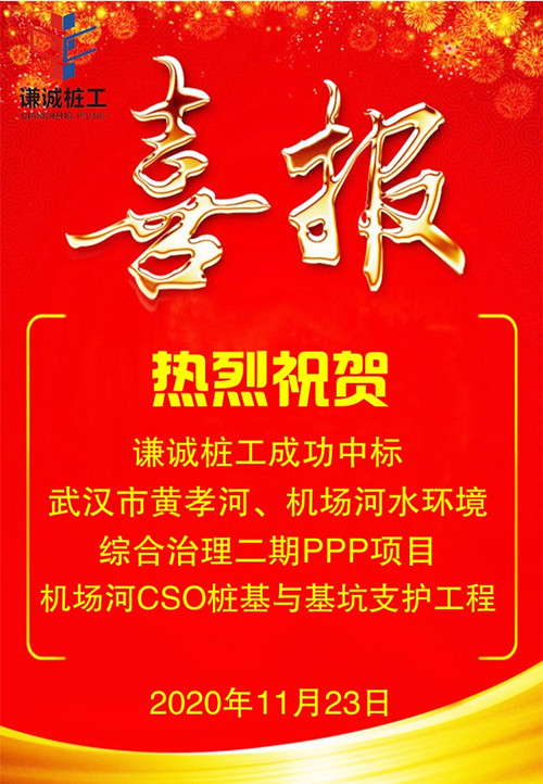 捷報頻傳 征程再起 ——謙誠樁工成功中標(biāo)黃孝河、機場河水環(huán)境綜合治理二期PPP項目機場河CSO樁基與基坑支護工程