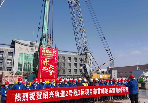 本站訊 1月20日上午,公司承建紹興地鐵2號(hào)線袍中路站項(xiàng)目地下連續(xù)墻工程開(kāi)工儀式隆重舉行,總包方中鐵十二局項(xiàng)目經(jīng)理?xiàng)顐?、?shū)記陶方苗、總工王新龍攜項(xiàng)目班子主要成員出席儀式,監(jiān)理總代朱偉、安全總監(jiān)陳賢瑞等蒞臨見(jiàn)證,公司領(lǐng)導(dǎo)李義勇受郭克誠(chéng)董事長(zhǎng)委托攜副總裁兼地下空間執(zhí)行董事長(zhǎng)吳松如、地下空間華東工程指揮部副指揮長(zhǎng)嚴(yán)國(guó)兵、指揮長(zhǎng)助理兼總工程師葉鵬、設(shè)材部部長(zhǎng)李登峰及華東地區(qū)主要管理人員、各在建項(xiàng)目負(fù)責(zé)人參加儀式。