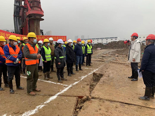 本站訊 1月25日上午,由謙誠樁工華中工程指揮部承建機(jī)場河CSO樁基與基坑支護(hù)工程項(xiàng)目開工儀式隆重舉行,監(jiān)理方武漢飛虹工程管理咨詢有限公司機(jī)場河項(xiàng)目總監(jiān)劉華鋼、總代胡亞輝、專監(jiān)晏俊杰,總包方中建三局集團(tuán)有限公司機(jī)場河項(xiàng)目生產(chǎn)副總孫志強(qiáng)、總工杜禮珍及機(jī)場河工區(qū)經(jīng)理邱奎等到場祝賀,公司董事長郭克誠攜副總裁兼項(xiàng)目管理中心總經(jīng)理周強(qiáng)、董辦王天慧、人事總監(jiān)兼監(jiān)事會/工會主席況亞萍、項(xiàng)目管理中心副總經(jīng)理兼華中工程指揮部指揮長王大勇、人力資源部部長汪晶晶、設(shè)材部部長劉俊及機(jī)場河全體管理人員參加儀式。