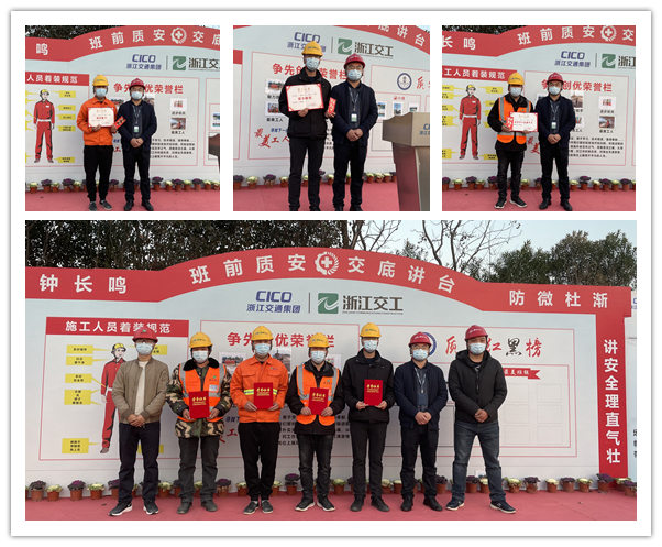 為激勵(lì)先進(jìn)、樹立榜樣,杭紹甬高速項(xiàng)目總包方浙江交工對所屬各工區(qū)安全文明施工進(jìn)行月度綜合檢查考評,于2月13日下午在施工現(xiàn)場召開2021年1月優(yōu)秀合作單位及先進(jìn)個(gè)人表彰大會(huì)。會(huì)議由浙江交工杭紹甬高速項(xiàng)目安全總監(jiān)沈梅雨主持,商務(wù)經(jīng)理兼項(xiàng)目副經(jīng)理余賓成發(fā)表致辭,公司杭紹甬高速項(xiàng)目團(tuán)隊(duì)負(fù)責(zé)人李偉帶隊(duì)參加。