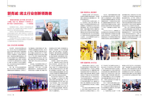作為巖土工程行業(yè)領軍企業(yè)的創(chuàng)新領跑者,武漢建協巖土工程分會會長、謙誠樁工董事長郭克誠榮登本期封面人物,由他作為第一作者執(zhí)筆的學術論文《攪拌樁技術發(fā)展的思考與研究》,從時代發(fā)展對綠色、節(jié)能、環(huán)保的要求出發(fā),圍繞“綠色建造”理念,從工程建設領域走向縱深發(fā)展時的新問題、如何與新興高科技進行深度融合等方面對水泥攪拌樁技術的未來發(fā)展進行思考,介紹了公司自主研發(fā)新設備——新型大直徑超深加芯攪拌一體化樁機和與鐵四院聯合研發(fā)節(jié)能環(huán)保型固化材料——“海相淤泥質土專用固化劑”的研發(fā)成果和應用前景。另外,由公司技術骨干彭威執(zhí)筆的《一種水泥土攪拌樁智能化施工與管理系統(tǒng)》,則針對目前國內水泥土攪拌樁施工自動化程度低、成樁質量難以保證以及施工現場管理效率低等問題,結合公司近年來裝備智能化主要研發(fā)方向,詳細介紹了公司正在大力研發(fā)的“一種水泥土攪拌樁智能化施工與管理系統(tǒng)”的研發(fā)進展情況。