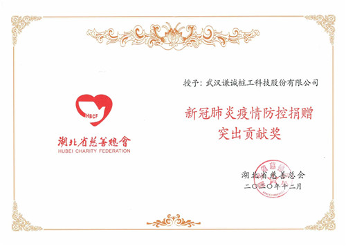 因善攜手 與愛同行——謙誠樁工獲湖北省慈善總會授予“疫情防控捐贈突出貢獻(xiàn)獎”牌匾和證書
