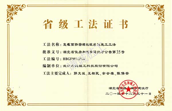 下一篇: 榮獲“水泥砂漿噴射多向加芯攪拌樁施工工法”